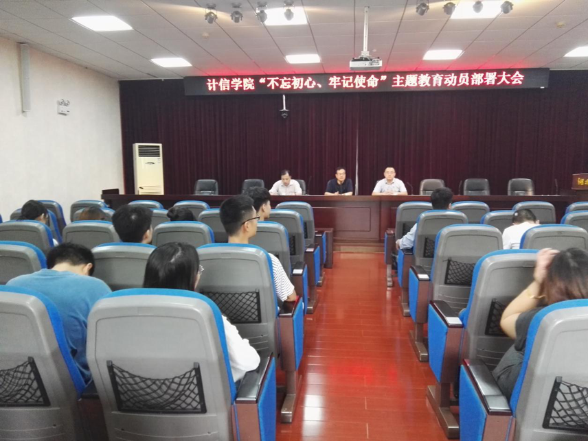9月17日下午,根据省委主题教育巡回指导十二组和学校党委关于“不忘初心、牢记使命”主题教育工作的有关安排,计算机与信息工程学院将按照“守初心、担使命,找差距、抓落实”总要求,围绕“理论学习有收获、思想政治受洗礼、干事创业敢担当、为民服务解难题、清正廉洁作表率”目标任务,召开了学院“不忘初心、牢记使命”主题教育动员部署大会。会议由分党委余绍黔书记主持,全体教职工党员和学生党支部支委参加了此次大会。