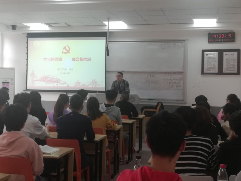 任治老师授课的主题是“学习十九大《中国共产党章程(修正案)》”,十九大党章程修正案坚持和传承这一历史经验,把习近平新时代中国特色社会主义思想确立为党必须长期坚持的指导思想,使党章充分体现马克思主义最新成果,以指导新时代中国特色社会主义的新实践。这是十九大党章修正案的最大亮点和历史性贡献。老师带领着同学们了解和学习了十九大《中国共产党章程(修正案)》是具有实际意义的,使同学们对党更了解,心向党更靠近。