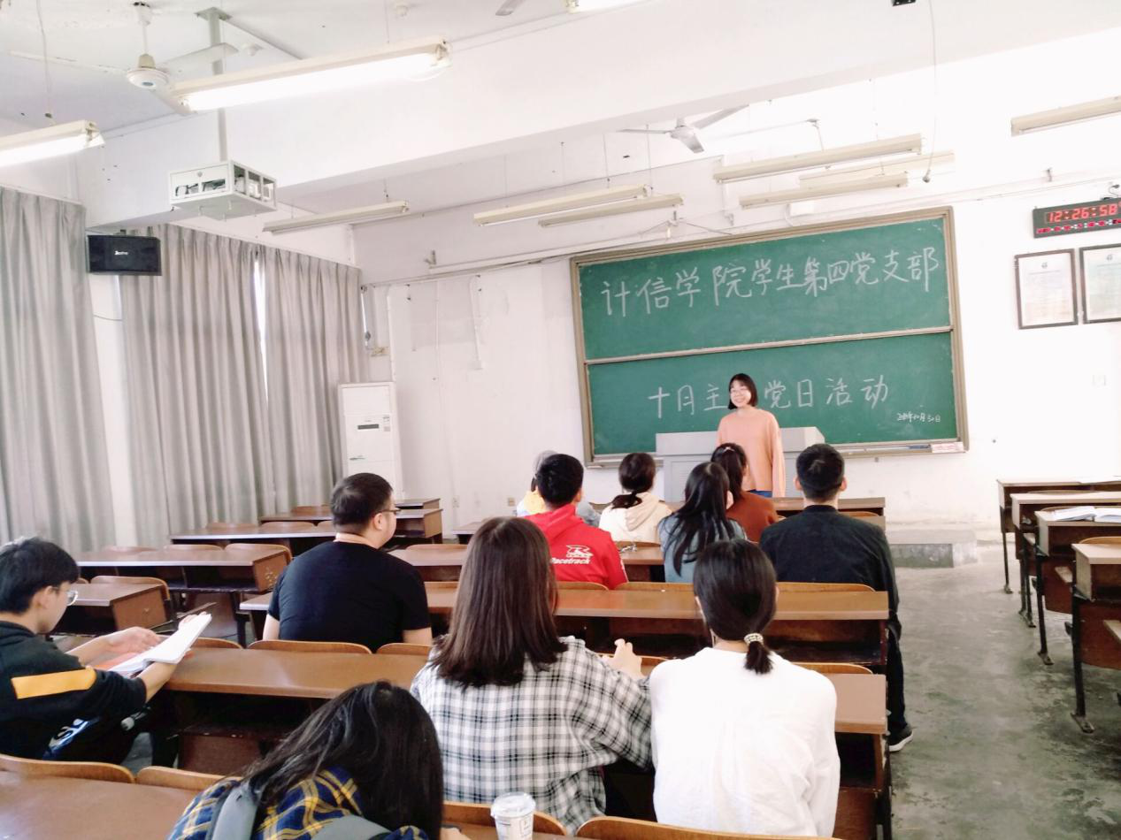 于10月27日中午12:30在至诚楼d307教室由计信学院第四党支部组织了关于此次主题的党日活动,参与此次活动的是计信学院学生第四党支部全体党员。会上讲述了习近平总书记的强调--党的力量来自组织。党的全面领导、党的全部工作要靠党的坚强组织体系去实现。党中央是大脑和中枢,党中央必须有定于一尊、一锤定音的权威。党的地方组织的根本任务是确保党中央决策部署贯彻落实,有令即行、有禁即止。党组织在党的组织体系中具有特殊地位,要贯彻落实党中央和上级党组织的决策部署。每个党员特别是领导干部都要强化党的意识和组织观念,自觉做到思想上认同组织、政治上依靠组织、工作上服从组织、感情上信赖组织。