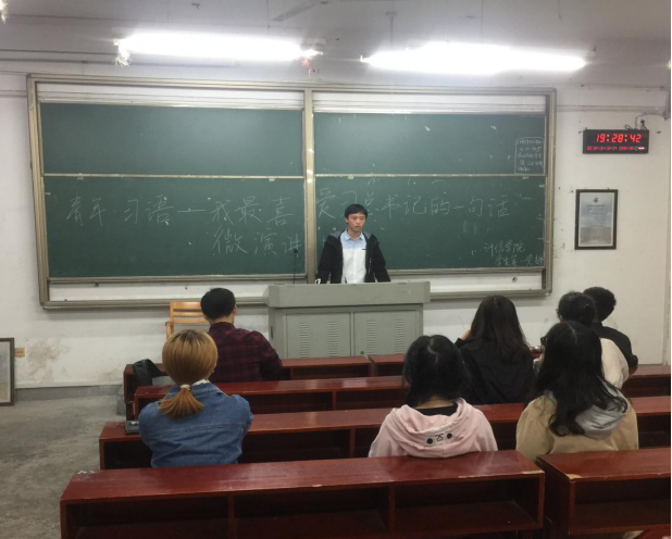 2018年10月3日晚上19:30时分,为进一步贯彻落实党的十九大会议精神,推动“两学一做”学习教育的深入开展,增强学生党员对党的热爱和了解,我院学生第一党支部于二教日新楼D202教室举行“青年·习语——我最喜爱习近平总书记的一句话”微演讲比赛初赛。