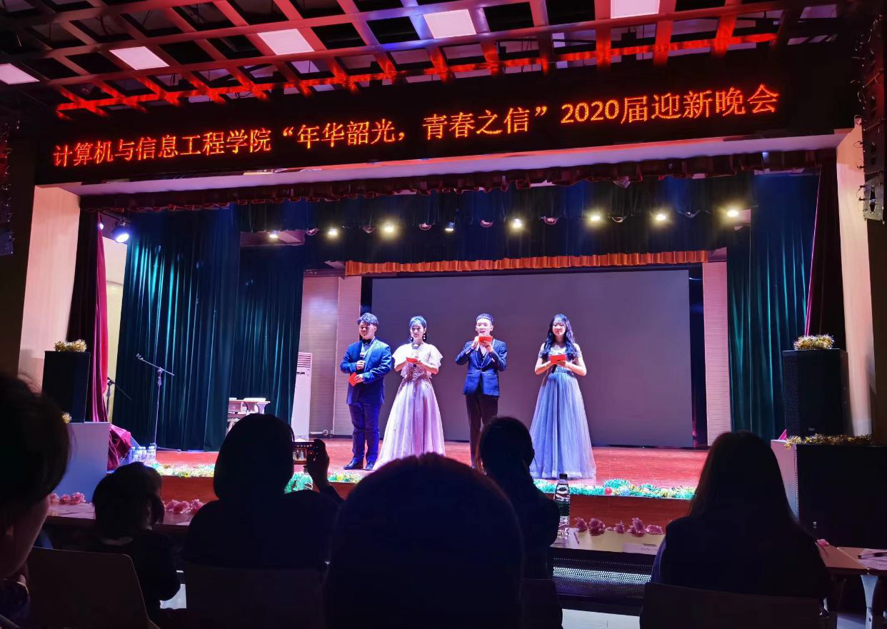 为迎接2020级新生的到来,展现我院新生学子的风采。计算机学院于2020年11月15日晚7点在铭德食堂二楼大学生活动中心举办这次主题为“年华韶光,青春之信“的迎新晚会。到场的观众包括辅导员老师,团学各部门负责人以及志愿者以及部分20级新生。