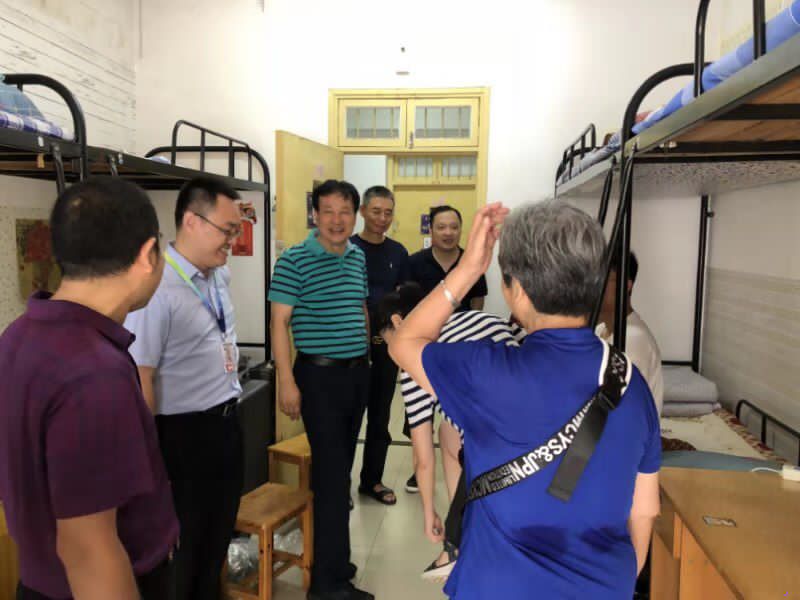 他们走访了部分寝室,认真查看了学生住宿环境,耐心询问新生对新环境的适应情况,了解同学们对学校、学院的印象和感受。余绍黔书记希望2019级新生,能够尽快适应新的学习、生活环境,尽快实现角色的转变,有什么困难和需要及时向学院反馈,以便学院认真商讨、解决。同时,他还叮嘱同学们要多锻炼身体,注意人身和财产安全,团结友爱,互帮互助,营造和谐的寝室氛围。学院老师们的悉心问候让同学们感到格外的亲切,纷纷向老师们分享自己在大学校园里第一天的感受。