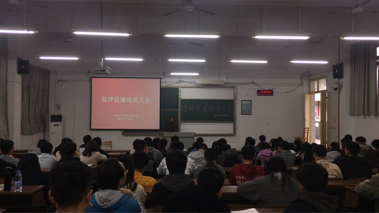 2018年11月6日下午2点30分,围绕近期即将开展的本科教学评估工作,计信学院分党委李吉林副书记主持召开了一场全院全体学生干部参加的“迎评促建动员大会”专题讲座,希望借此讲座让学生干部充分发挥领头雁的作用,将迎评准备工作落实到实处,继而助力学校三升规划。