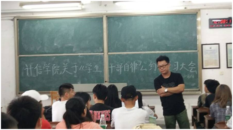 10月9日中午12时,计信学院分团委学生会在日新楼D302教室召开了湖南商学院计信学院关于《学生干部自律公约》学习大会,计信学院分团委书记罗彬老师主持了此次会议。