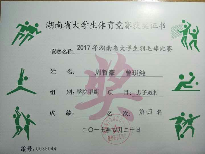 2017年湖南省大学生羽毛球比赛男子双打第四名