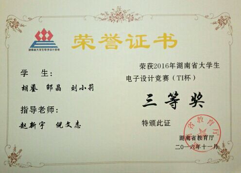 2016年湖南省大学生电子设计大赛(TI杯)三等奖