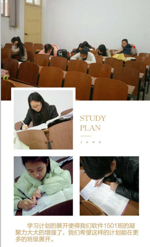 对于当代大学生来说,早起赖床,上课迟到的现象早已司空见惯。希望这样的软件1501班,能够带给全院甚至全校的班级和同学触动,让学习成为一种常态,营造一种良好的学习氛围,创建优良学风班级。