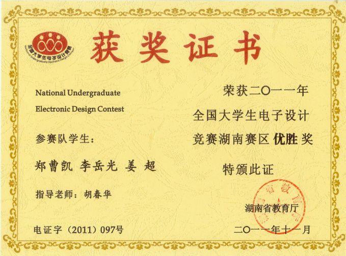 电子设计竞赛湖南赛区优胜奖