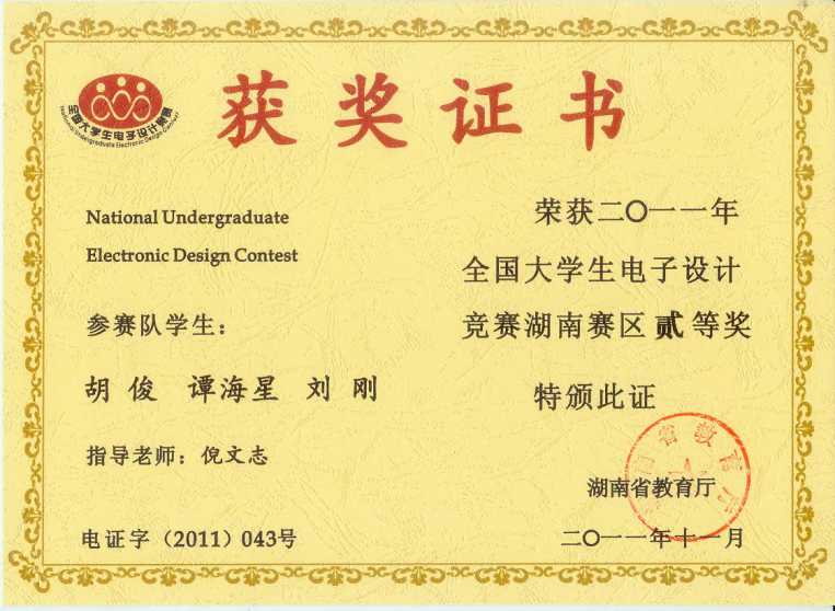 电子设计竞赛湖南赛区二等奖