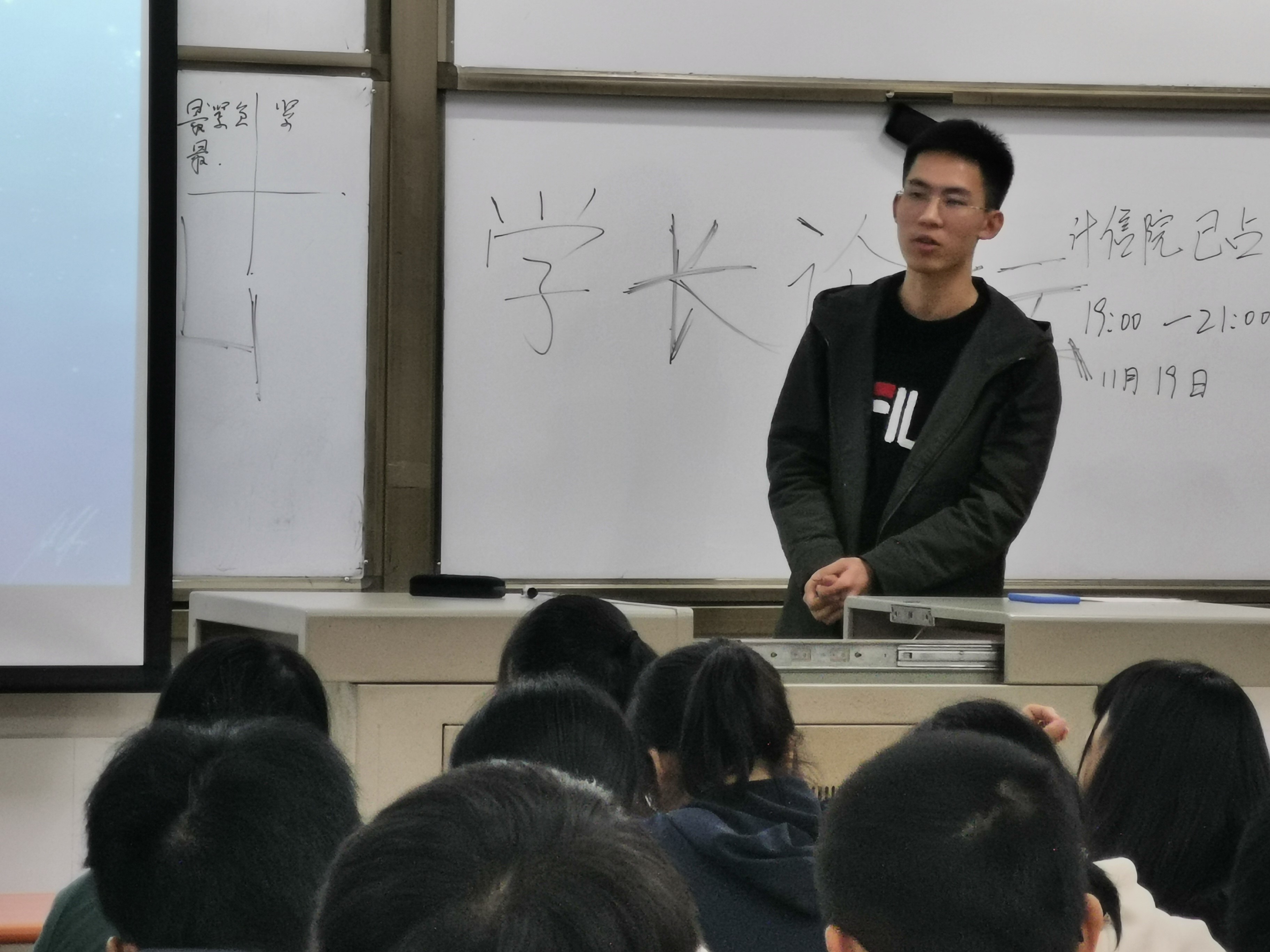 讲座尾声,刘文杰同学首先就提高大学生综合能力提供了几个打的学习方向,如英语四六级的证书获得、发表论文与专利、普通话等级的证书获得等。然后在互动环节,悉心为有疑的同学分析问题,提供可行方案。