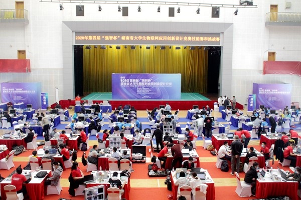 11月14至15日,由湖南省教育厅主办、我校承办的2020年第四届“强智杯”湖南省大学生物联网应用创新设计竞赛在我校体育馆和日新楼举行。国防科技大学、中南大学、湖南大学、湖南工商大学等32所高校195支队伍参赛。湖南省教育厅高教处处长曾力勤、湖南省物联网学会理事长施荣华、我校副校长刘国权等到现场指导和观摩比赛。