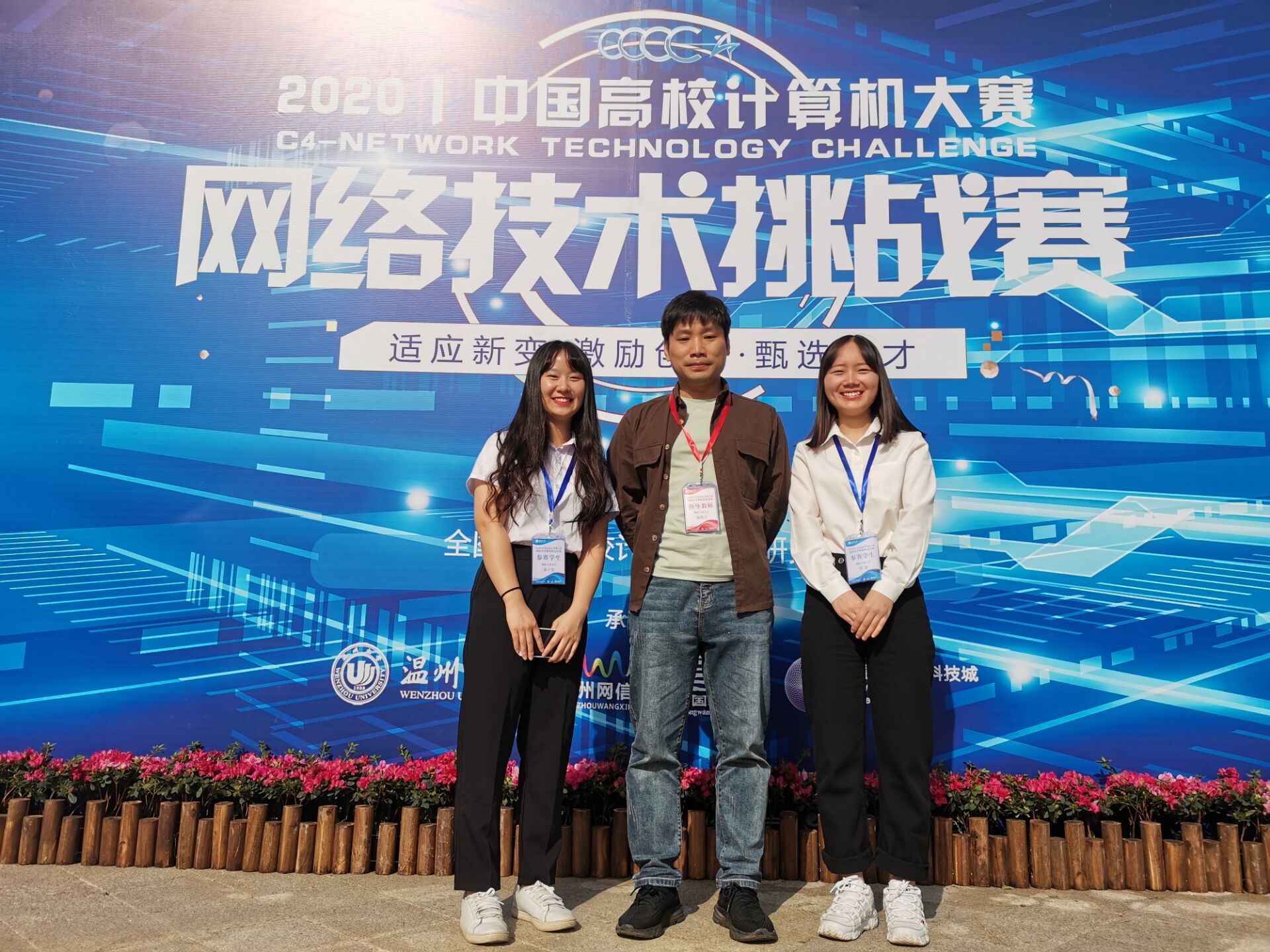 近日,2020年“中国高校计算机大赛-网络技术挑战赛”全国总决赛在温州浙南科技城落下帷幕。我校计算机与信息工程学院杨俊丰、李小龙老师指导的“01”团队(成员:符静、何澳丽、朱子莹、彭潇哲、刘涟洲)在创新创意A系列中获得全国二等奖。