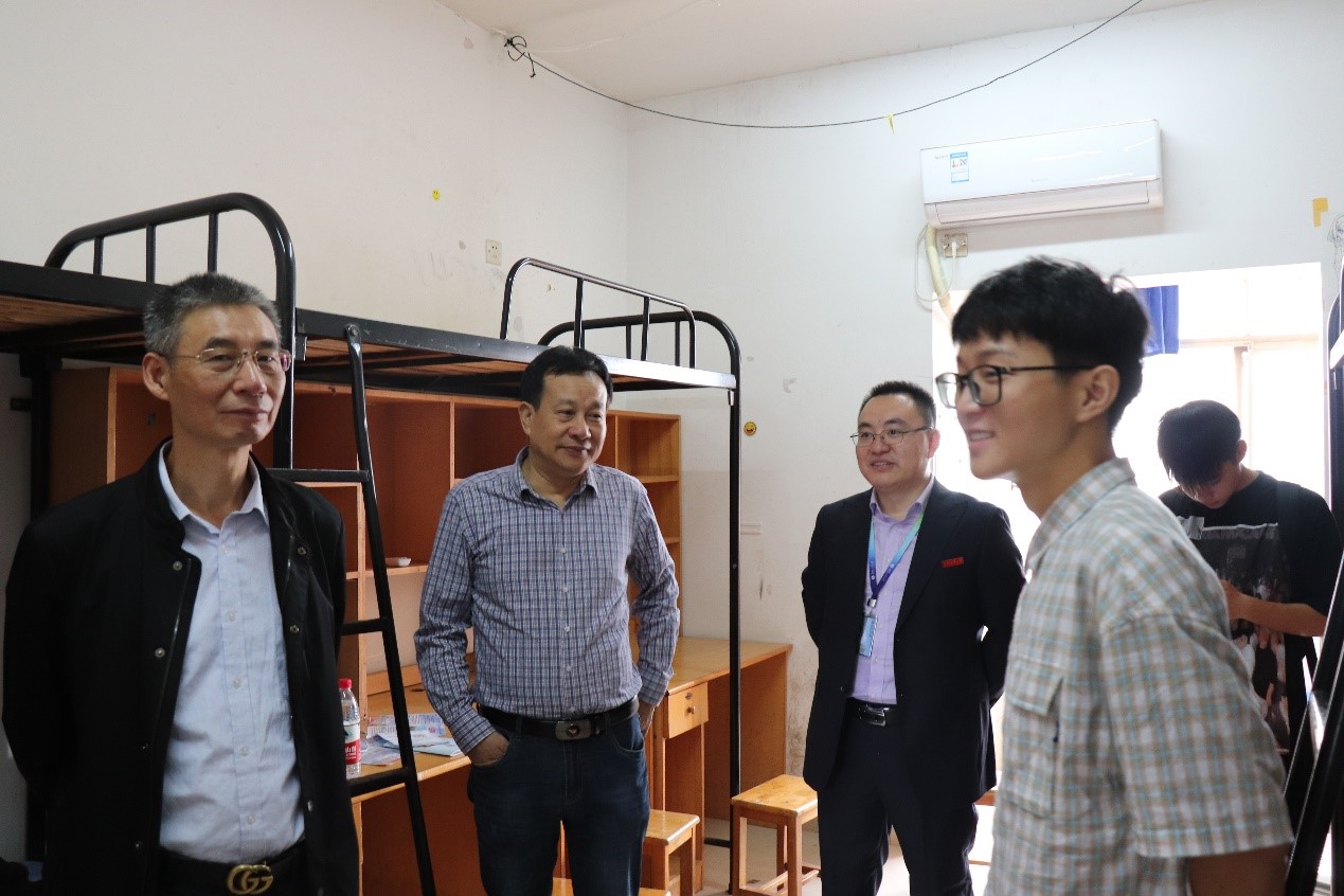 9月19日上午,迎新工作紧张有序进行着。计信学院余绍黔书记、任治副书记、熊曙初副院长等领导亲临南北校区迎新点,并深入走访新生宿舍,为远道而来的同学及家长们送上了殷切的关怀。余绍黔书记与新生亲切交谈,详细询问了新生学习、家庭、来校交通方式和生活等方面的情况,关心新生衣食住行是否适应,就住宿条件、校园环境、同学之间的相处方式以及疫情期间需要注意的事项与新生进行了细致的交流。希望同学们要珍惜韶华,好读书、读好书,尽快投入学习中,充分利用学校的资源,提高自身,让学习、生活精彩充实。