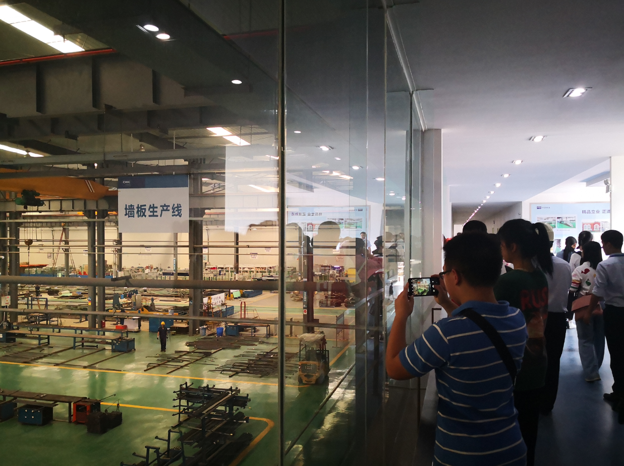 在企业相关工作人员的引导下,同学们一行首先参观了企业中心展厅,工艺馆,构件生产线,别墅样板区。