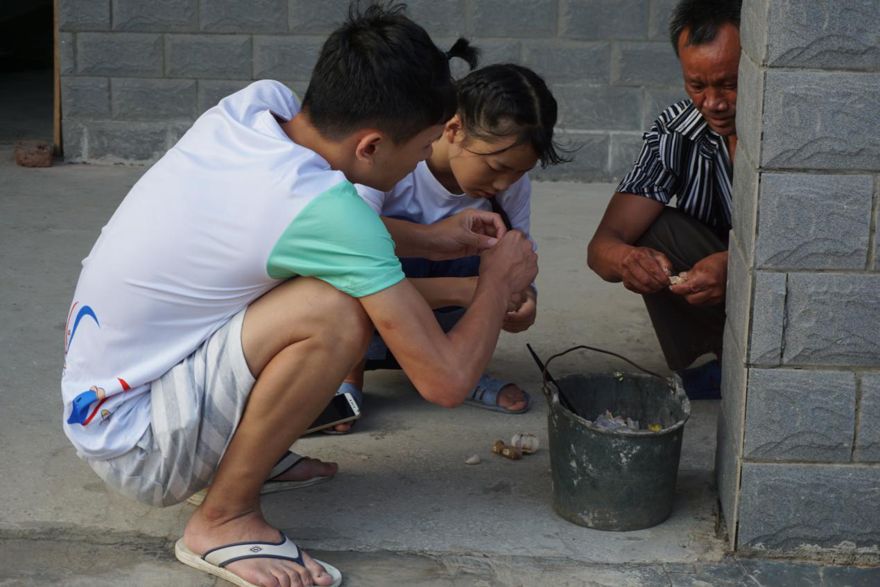 中秋节当天,志愿者和村民们一起准备了团圆饭,十五个村民和五个志愿者围成两桌,十分热闹。到了晚上,志愿者和村民一起吃月饼、赏月亮,分享各自的经历,在浓浓的中秋节氛围中,村民们都很开心,志愿者们也觉得心里特别宁静。
