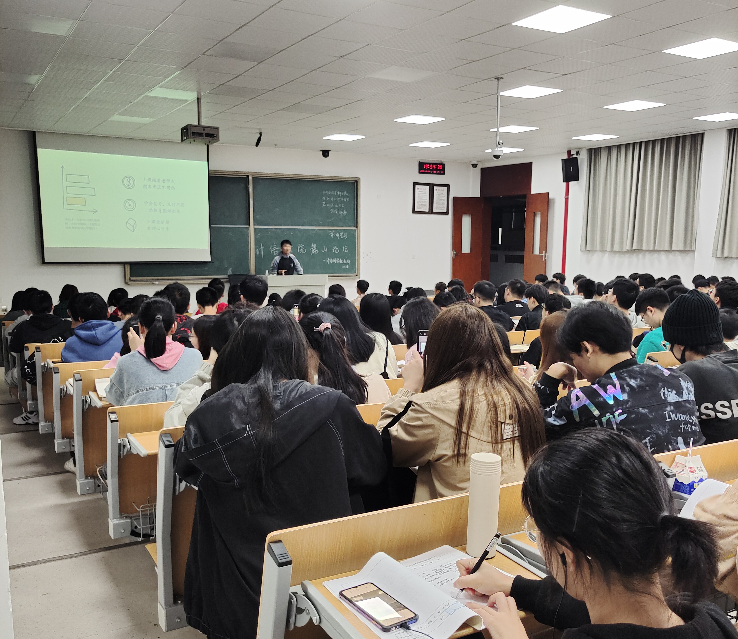2020年10月28日,计算机学院于湖南工商大学南苑D304教室举办了第二百九十四期“麓山学长论坛”,主讲人是来自18级智管的周俊同学。是2019-2020年度“国家奖学金”2018-2019年度“国家励志奖学金”的获得者,是多项校级比赛的获奖者,不仅如此,还担任班级学习委员、校级组织学管会部长等职位。他用自己的亲身经历向我们将本次讲座主题——“心之所向,未来可期”展现的淋漓尽致。如何高效学习又如何好好生活,周俊同学从这两个方面入手本次讲座。如何高效学习,专心致志,上课跟着老师的思路走;温故而知新,学会复习,及时巩固,用思维导图等方式做好总结。积极向上,争取前排座位。如何好好生活,蓬勃向上,加入学校的一些部门或社团,多参加各类比赛去提高自己的能力;拓宽眼界,趁着有时间和几个朋友来场说走就走的旅行;提升自我,做一个踏实做事、实事求是,能让别人信任的人。讲座的最后,周俊同学留给学弟学妹们这样一句话——“因为热爱,所以优秀。”激发大家以后的学习激情和生活热情来迎接那个更好更优秀的自己。