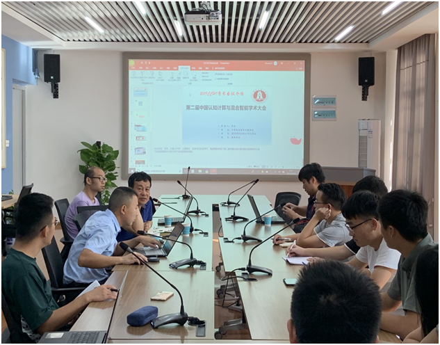 首先,余绍黔书记讲解了学术沙龙活动的必要性,提出了希望研究生们多多参加学术论坛、学术沙龙,勇于汇报自己的研究成果,提出研究疑惑,不断在科研道路上探索、前进。之后,周新民教授给研究生们分享了关于学术研究的宝贵经验,他要求研究生们对待科研一定要积极主动、找准方向、不怕困难、高标准高要求地对待学术研究和文章发表。赵文军副教授对同学们的进度提出表扬但是也提出了对该研究应用场景等方面的宝贵意见。李闯博士分享了参加“第二届中国认知计算机与混合智能学术大会”的收获,详细地给大家介绍了认知计算的基础理论、人工智能和深度学习在处理人脑信息上的应用新动态及未来方向。乃波博士就“基于相关滤波的目标跟踪方法”给大家带来精彩的发言,着重讲解了“相关滤波法”在判别式跟踪算法上的应用,并耐心回答了大家的疑问。在听完各位老师的讲解后,相关专业研究生同学报告了“新零售虚拟现实”方向的研究现状和自己的研究进度,老师们在听完汇报后给予了研究思路的肯定并提出了宝贵的意见。