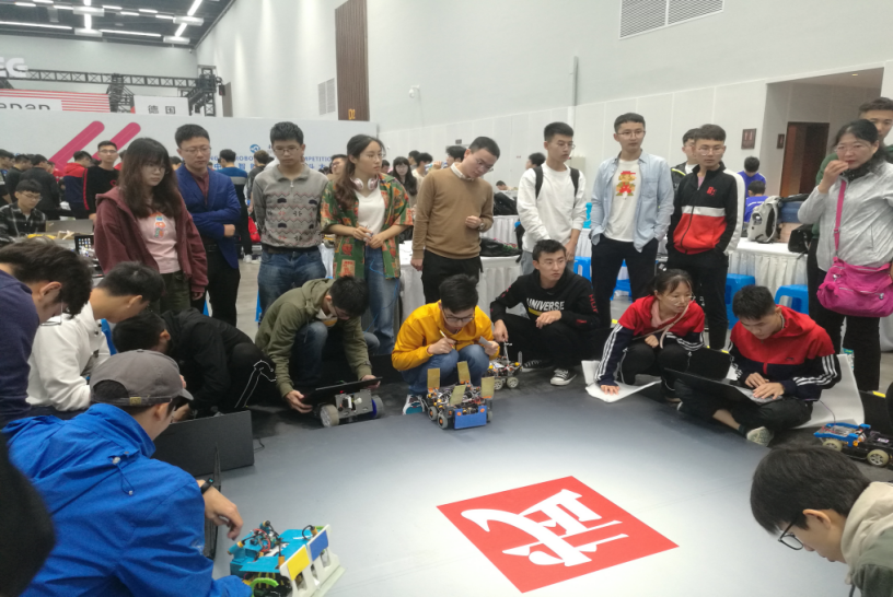 我校共选拔了八名学生组成两个代表队参赛,均参加了“轮式自主格斗1V1”项目。该项目共有140支来自全国各大高校的代表队参加,竞争激烈程度。